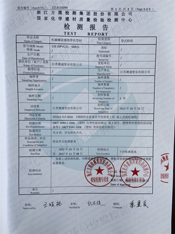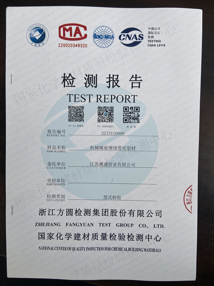 澳通管业主导产品钢丝网骨架聚乙烯复合管及管件(SRTP),具有当今国内同行业技术水平,我们拥有行业标准CJ/T189-2007以及CECS181:2005编写组成员2人,塑料管材、管件产品等...